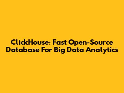 ClickHouse: Fast Open-Source Database For Big Data Analytics