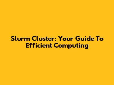 Slurm Cluster: Your Guide To Efficient Computing
