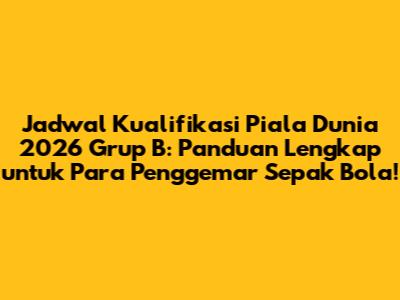 Hai, para penggemar sepak bola! Kalian semua pasti sudah enggak sabar menantikan gelaran Piala Dunia FIFA 2026, kan? Nah, salah satu hal paling seru dalam perjalanan menuju piala dunia adalah kualifikasi! Khusus buat kalian yang penasaran dengan Grup B, artikel ini bakal jadi panduan lengkap buat kalian. Kita akan bahas semua hal penting, mulai dari jadwal pertandingan, tim-tim yang bertanding, hingga peluang mereka untuk lolos ke putaran final. Jadi, siap-siap untuk menyelami dunia kualifikasi Piala Dunia 2026 Grup B yang seru ini, ya!