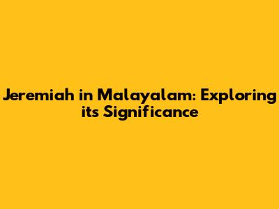 The Enduring Relevance of Jeremiah in Malayalam
