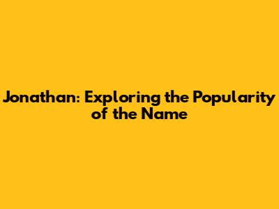 Is Jonathan the Right Name for Your Child?