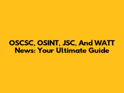 OSCSC, OSINT, JSC, And WATT News: Your Ultimate Guide