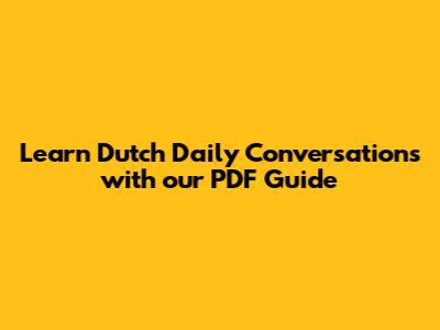 Hey everyone! Are you looking to master Dutch daily conversations and feel more confident chatting with locals? You've come to the right place, guys! Learning a new language can feel like a huge mountain to climb, but breaking it down into manageable chunks, like everyday dialogues, makes it so much easier. That's why we've put together this awesome guide on Dutch daily conversation PDFs. We'll dive deep into why these resources are gold, how to use them effectively, and what kind of essential phrases you should be focusing on. Get ready to supercharge your Dutch speaking skills without feeling overwhelmed.