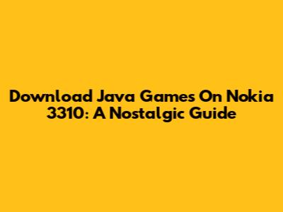 Download Java Games On Nokia 3310: A Nostalgic Guide