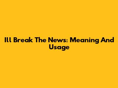 I'll Break The News: Meaning And Usage