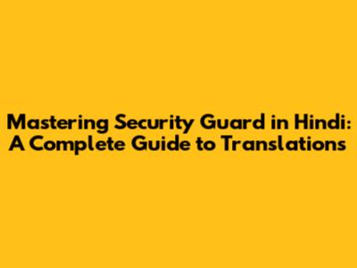 The Direct Hindi Translations of 'Security Guard' and Their Nuances
