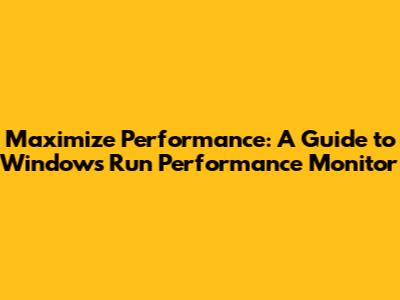 Here are some final tips and tricks to help you get the most out of the Windows Run Performance Monitor: