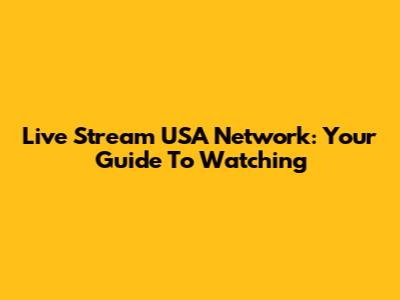 Live Stream USA Network: Your Guide To Watching