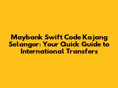 Hey guys! Ever needed to send or receive money internationally through Maybank, specifically in Kajang, Selangor? You've probably stumbled upon the term SWIFT code. Don't sweat it, it's not as complicated as it sounds! This guide will break down everything you need to know about Maybank's SWIFT code in Kajang, Selangor, helping you navigate international money transfers like a pro. We'll cover what a SWIFT code is, why you need it, and, of course, the specific code you'll need for Maybank Kajang branches. Let's dive in!