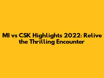 Hey guys! Are you ready to dive into the exhilarating world of cricket and relive one of the most anticipated clashes of the 2022 season? We're talking about the epic showdown between the Mumbai Indians (MI) and the Chennai Super Kings (CSK)! This match was a rollercoaster of emotions, filled with nail-biting moments, stunning performances, and unexpected twists. Whether you're a die-hard fan of MI, a devoted supporter of CSK, or just a cricket enthusiast, this recap is for you. Let's jump right into the heart of the action and break down the highlights that made this game a memorable one.