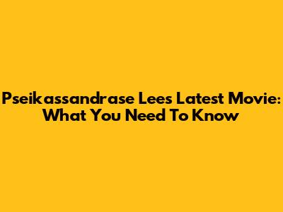 Pseikassandrase Lee's Latest Movie: What You Need To Know