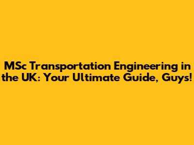 So, you're thinking about diving into the world of MSc Transportation Engineering in the UK? Awesome choice, seriously! This field is super crucial for our planet's future, and getting your Master's degree here in the UK is like hitting the jackpot. We're talking about top-notch universities, cutting-edge research, and a whole lotta career opportunities. Whether you're fresh out of undergrad or looking to level up your existing career, a Master's in Transportation Engineering is your ticket to shaping how people and goods move around, making our cities smarter and our journeys smoother. Let's break down why the UK is the place to be for this, what you can expect from a program, and how it can totally transform your career prospects. It's not just about building roads anymore; it's about creating sustainable, efficient, and inclusive mobility systems for everyone. Think smart traffic management, innovative public transport solutions, and the integration of new technologies like autonomous vehicles and hyperloops. The demand for skilled transportation engineers is only going to skyrocket as our world becomes more interconnected and our urban areas continue to grow. A Master's degree will equip you with the advanced knowledge and analytical skills needed to tackle these complex challenges head-on. So, buckle up, because we're about to embark on a journey through the exciting landscape of MSc Transportation Engineering in the UK!