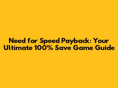 How to Find and Use a Need for Speed Payback 100% Save Game