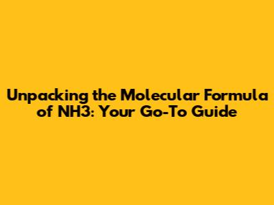 Hey guys! Ever wondered about the simple yet incredibly important molecular formula of NH3? You know, that little string of letters and numbers that tells us exactly what a substance is made of? Well, you've come to the right place! We're going to dive deep into NH3, which you probably know better as ammonia. It's a compound that's everywhere – from the fertilizer that helps grow our food to the cleaning products under your sink. Understanding its molecular formula is key to grasping its properties and why it's so darn useful. So, buckle up, because we're about to demystify the world of NH3 and its fundamental building blocks. We'll break down what each part of 'NH3' means, how it relates to the structure of the molecule, and why this seemingly simple formula holds so much power in chemistry. Get ready to become an NH3 expert!