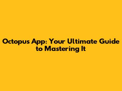 Hey guys! Ever wondered how to really nail using the Octopus app? Well, you're in the right place! This guide is going to walk you through everything you need to know to become an Octopus app pro. We'll cover all the basics, some cool tricks, and even troubleshoot common issues. So, let's dive in and unlock the full potential of this awesome app!