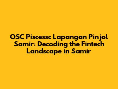 Hey guys! Ever wondered about the fintech scene in smaller regions and how online lending platforms, or pinjols, operate there? Let's dive deep into the world of OSC Piscessc and its observations on the pinjol landscape in Samir. This article aims to break down what's happening on the ground, offering insights into the challenges, opportunities, and overall impact of these digital lending services. Buckle up, because we're about to embark on a journey through the financial technology ecosystem of Samir!