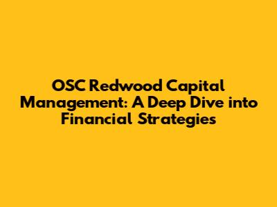 Hey there, financial enthusiasts! Let's talk about OSC Redwood Capital Management – a name that's been buzzing around the financial world. You might be wondering, what's all the hype about? Well, buckle up, because we're diving deep into the world of OSC Redwood Capital, exploring their strategies, and figuring out what makes them tick. We'll break down their approach to capital management, and see what the deal is with their investment philosophy. It's like a backstage pass to understanding how they build and manage wealth. So, grab your favorite drink, and let's get started. We're going to cover everything from their core investment principles to how they help clients achieve their financial goals. It's time to decode OSC Redwood Capital Management, guys!