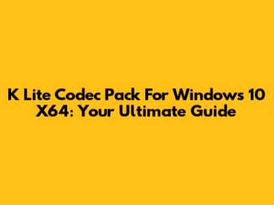 K Lite Codec Pack For Windows 10 X64: Your Ultimate Guide