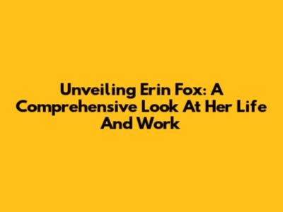 Unveiling Erin Fox: A Comprehensive Look At Her Life And Work