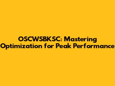 Key Strategies and Techniques for OSCWSBKSC Optimization
