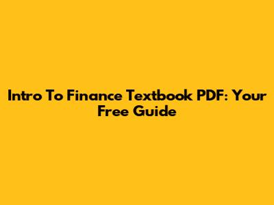 Intro To Finance Textbook PDF: Your Free Guide