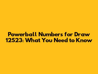 Hey everyone! So, you're looking for the Powerball numbers for draw 12523, huh? You've come to the right place, guys! It's always a thrill to check those numbers and see if luck was on your side. Lottery draws are a massive part of popular culture, sparking dreams of sudden wealth and life-changing wins. Each draw is a unique event, creating a fresh wave of anticipation and hope across the nation. People gather with friends, family, or even colleagues to discuss strategies, lucky numbers, and the sheer possibility of hitting the jackpot. The Powerball lottery, in particular, is famous for its massive jackpots, making it a constant topic of conversation and a beacon for those playing the lottery. Understanding the draw process, the odds, and how to check your numbers is key to enjoying the experience and maximizing your chances, however slim they might be. We're here to break down everything you need to know about the Powerball numbers for draw 12523, so you can stay informed and maybe even celebrate a win!