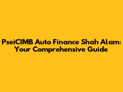 Hey guys! Looking to finance a car in Shah Alam? You've probably stumbled upon PseiCIMB Auto Finance. Let's break down everything you need to know about them, from what they offer to how to get approved. Whether you're a first-time buyer or a seasoned car owner, this guide will give you the lowdown on navigating auto finance with PseiCIMB in Shah Alam.