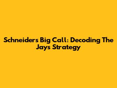 Schneider's Big Call: Decoding The Jays' Strategy