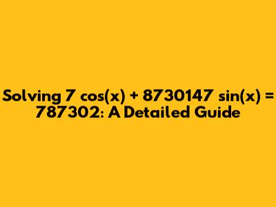 The general form of such equations is a cos(x) + b sin(x) = c, where a, b, and c are constants. In our case, a = 7, b = 8730147, and c = 787302. Because b is significantly larger than a, the sine term will dominate the behavior of the left-hand side of the equation. This is an important observation as we move forward.
