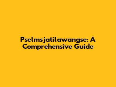 Pselmsjatilawangse: A Comprehensive Guide