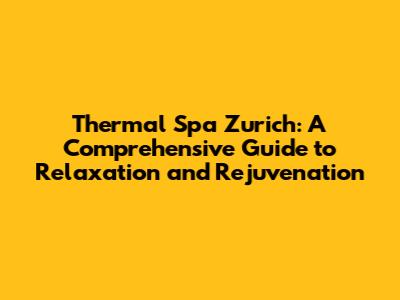 Unveiling the Magic of Thermal Spa Zurich