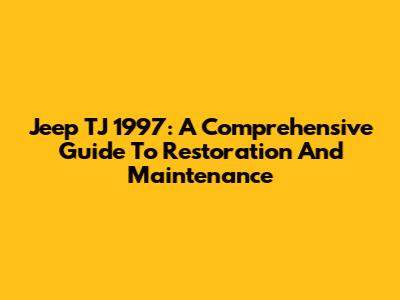 Jeep TJ 1997: A Comprehensive Guide To Restoration And Maintenance