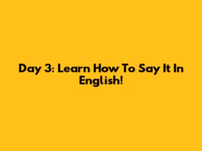 Day 3: Learn How To Say It In English!
