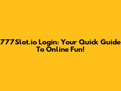 777Slot.io Login: Your Quick Guide To Online Fun!
