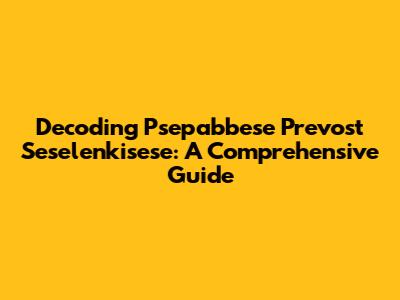 Decoding Psepabbese Prevost Seselenkisese: A Comprehensive Guide