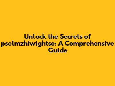 What Exactly Is pselmzhiwightse?