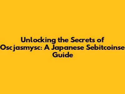 Hey guys! Ever stumbled upon something so unique and intriguing that you just had to dive in headfirst? Well, that's exactly how I felt when I first heard about Oscjasmysc. It sounds like a hidden treasure, right? And in a way, it is! So, buckle up, because we're about to embark on a journey to unravel the mysteries of Oscjasmysc, especially within the context of Japanese Sebitcoinse. I know, it sounds like a mouthful, but trust me, it's worth exploring.