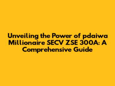 Alright, let's get down to brass tacks. pdaiwa Millionaire SECV ZSE 300A likely refers to a specific product or system, potentially related to financial instruments. The term “Millionaire” suggests it’s aimed at wealth creation or management, while “SECV ZSE” and “300A” might be model designations, technical specifications, or code names. Without more specifics, it's tough to nail down precisely what it does. However, we can make some educated guesses based on common financial and investment practices.