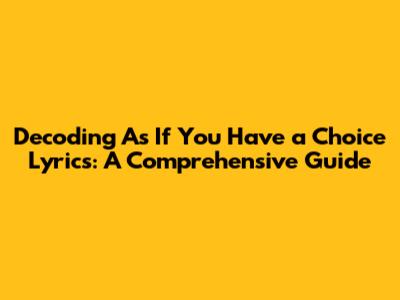 Hey music lovers! Ever gotten completely absorbed in a song, and felt like it was speaking directly to your soul? That's the feeling we're chasing today as we dive headfirst into the mesmerizing lyrics of "As If You Have a Choice." We're gonna break down what those words truly mean. Get ready to explore the depth and complexity hidden within this musical gem. Let's start with the basics, shall we?