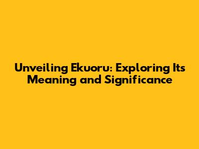 Demystifying Ekuoru: A Comprehensive Overview