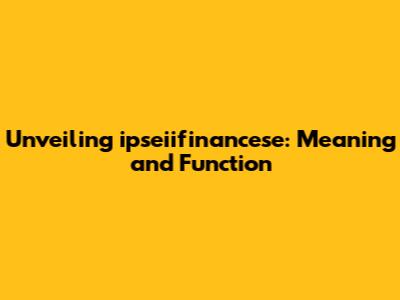 The Function of ipseiifinancese: What Does It Do?