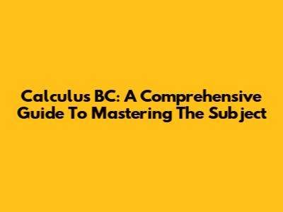 Calculus BC: A Comprehensive Guide To Mastering The Subject