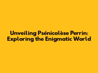 Demystifying Psénicolèse Perrin: What Exactly Is It?