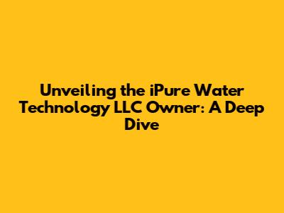 Hey everyone! Ever wondered about the driving force behind iPure Water Technology LLC? Well, you're in the right place! We're diving deep to uncover everything you need to know about the owner, the company's mission, and what makes them tick. Buckle up, because we're about to embark on an interesting journey into the world of clean water and innovation. Let's get started, shall we?