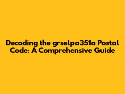 Hey everyone, let's dive into the fascinating world of postal codes, specifically focusing on the intriguing "grselpa351a". Postal codes, also known as zip codes in some regions, are more than just a string of numbers and letters; they are a crucial element in our modern communication and delivery systems. They help sort and direct mail and packages accurately and efficiently. This guide aims to demystify the "grselpa351a" postal code, providing a clear understanding of its significance and how it functions within the larger postal network. Whether you are curious about sending mail, receiving a package, or just simply fascinated by how things work behind the scenes, this article is for you. We'll explore what makes this specific code unique, the area it serves, and some of the broader implications of postal codes in our day-to-day lives. So, buckle up, and let's unravel the secrets of "grselpa351a"!