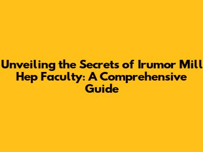 Hey everyone! Today, we're diving deep into the world of Irumor Mill Hep Faculty, exploring what makes it tick and why it's a topic that sparks curiosity. Whether you're a seasoned expert or just starting to scratch the surface, this guide is designed to provide you with a comprehensive understanding. We'll break down the essentials, uncover some hidden gems, and hopefully, make this complex subject a little easier to grasp. So, buckle up, grab your favorite beverage, and let's embark on this learning journey together!