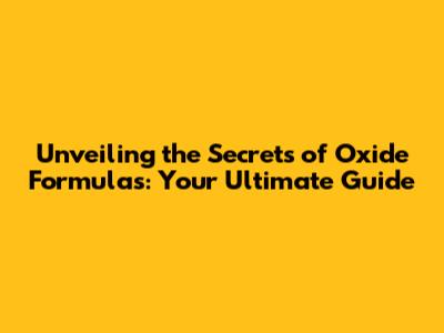 What Exactly Are Oxide Formulas?