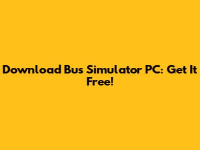 Download Bus Simulator PC: Get It Free!