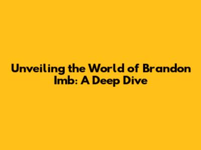 Hey guys! Ever heard of Brandon Imb? If not, you're in for a treat! This article is your all-access pass to understanding everything about this fascinating individual, his work, and the impact he's making. We'll explore his background, dive into his achievements, and uncover the essence of what makes Brandon Imb a name to remember. So, buckle up, and let's jump right in!