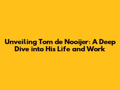 Who is Tom de Nooijer? An Introduction
